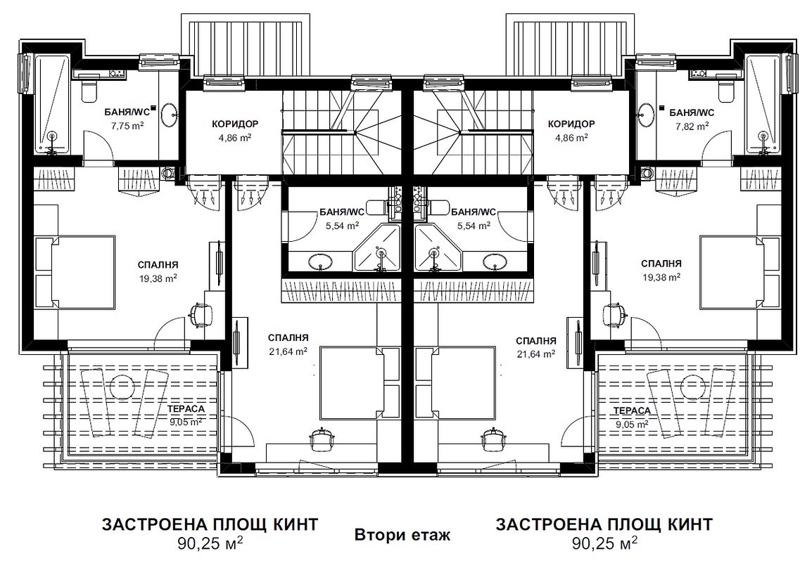 Na drugim piętrze znajdują się dwie eleganckie sypialnie, dwie łazienki z toaletami i przestronny wspólny taras. Tutaj można doświadczyć przyjemności porannej kawy lub wieczornych drinków, ciesząc się morską bryzą i piękną przyrodą.