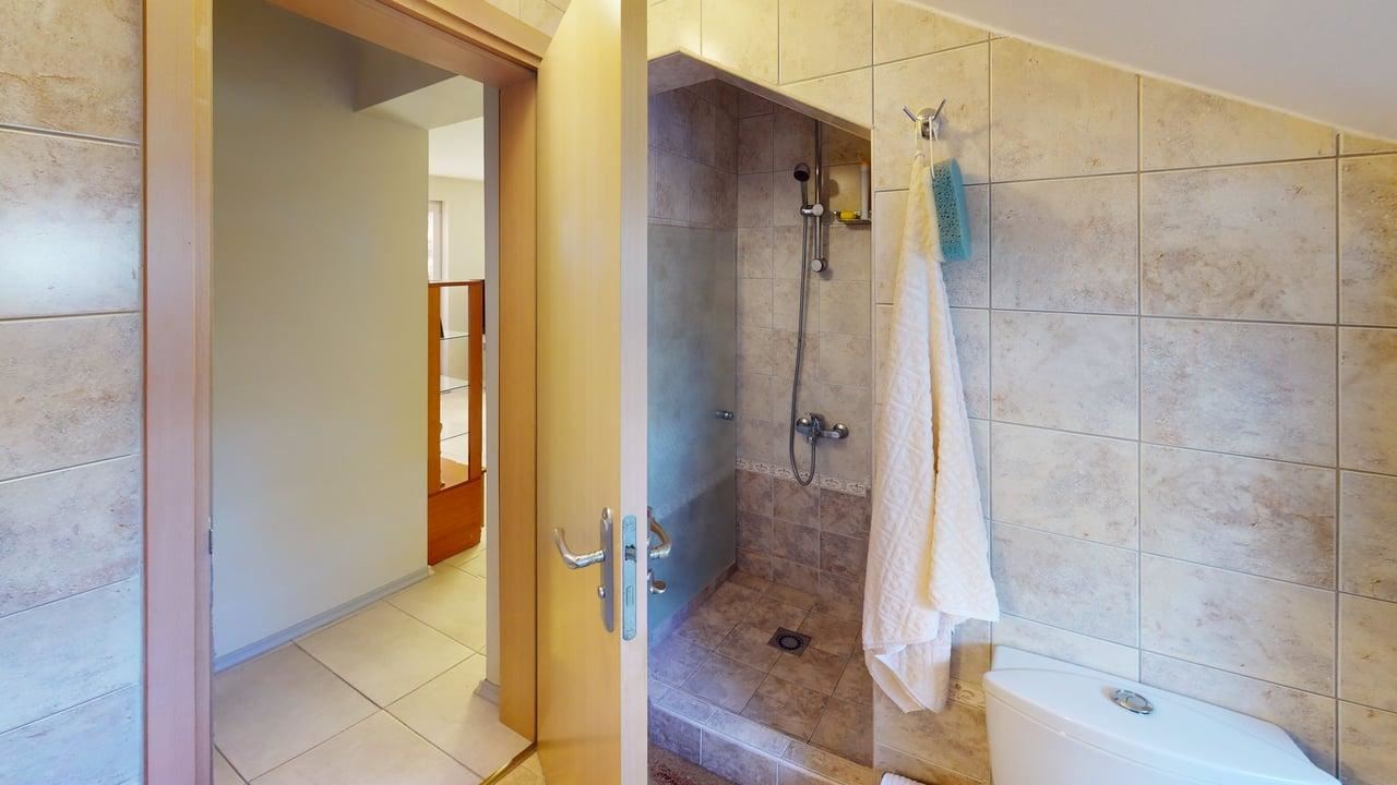Dom o powierzchni 340 m² rozmieszczonej na czterech poziomach oferuje jasne i funkcjonalne wnętrza. Znajduje się tu przytulny salon z kominkiem, oddzielna kuchnia, 10 pomieszczeń, w tym 8 samodzielnych sypialni, 5 łazienek, 5 balkonów, przestronne tarasy oraz wygodna weranda łącząca dom z zagospodarowanym ogrodem. Przestrzenie zaprojektowano tak, aby zapewnić komfort i prywatność wszystkim domownikom.