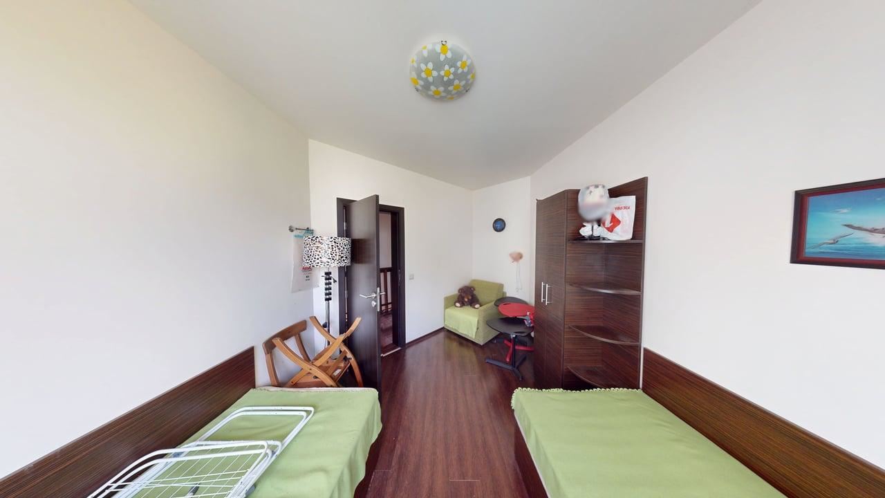 Eleganckie schody prowadzą na drugi poziom, gdzie znajdują się dwie przytulne sypialnie, zapewniające odpoczynek i prywatność. Jest tu także oddzielna łazienka, co dodaje funkcjonalności domowi. Cała atmosfera nieruchomości jest nowoczesna i harmonijna — z naciskiem na światło, przestrzeń i komfort. Townhouse jest doskonałym wyborem zarówno do całorocznego zamieszkania, jak i jako nieruchomość wakacyjna z potencjałem wysokiego zwrotu z wynajmu w jednym z najpopularniejszych kurortów nadmorskich w Bułgarii.