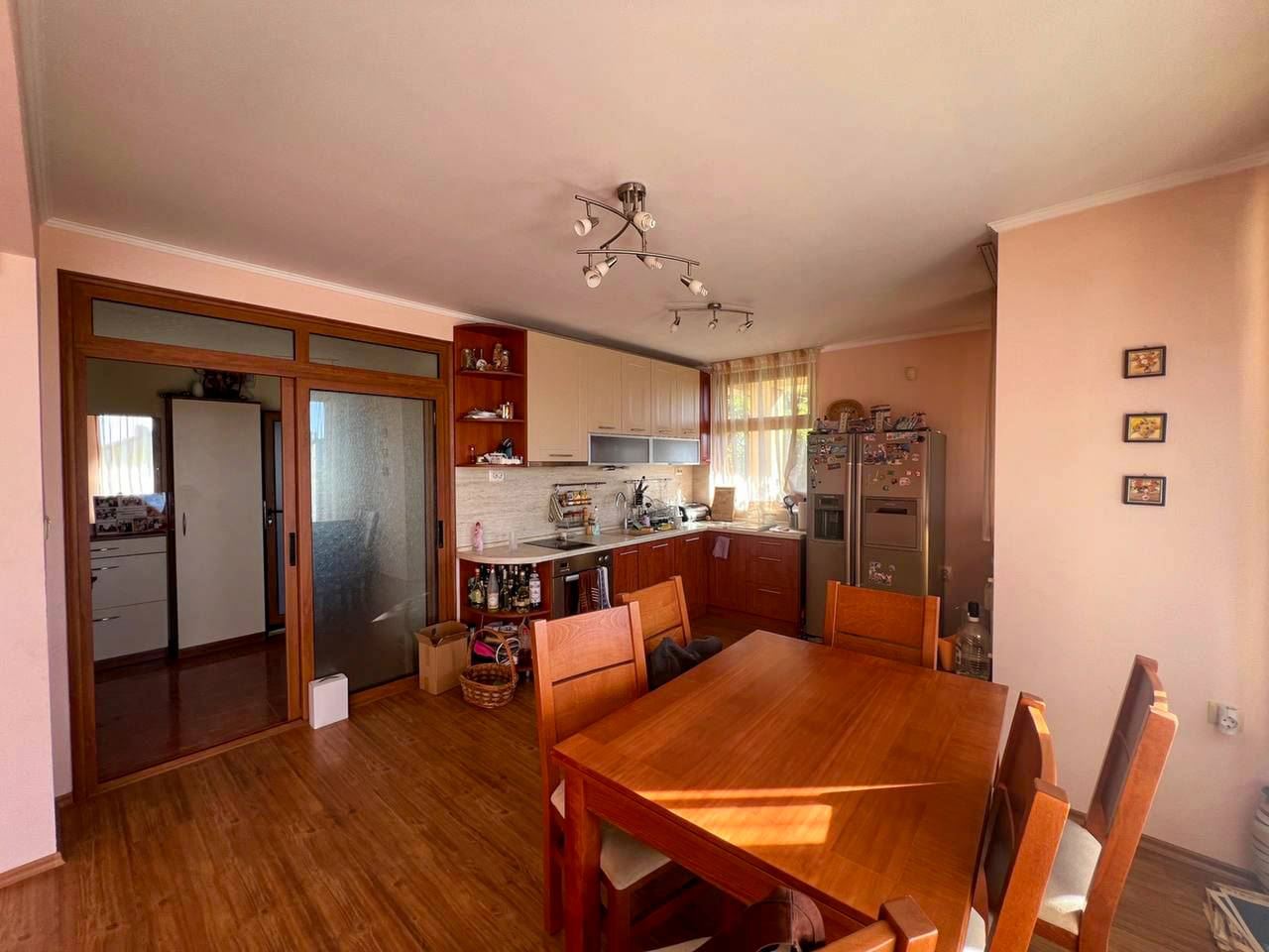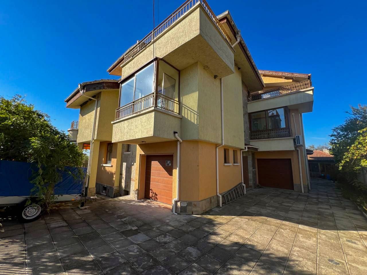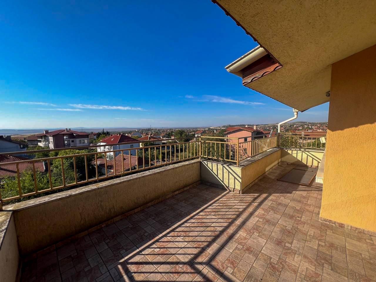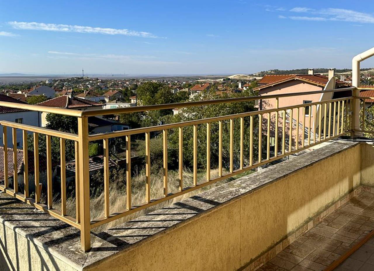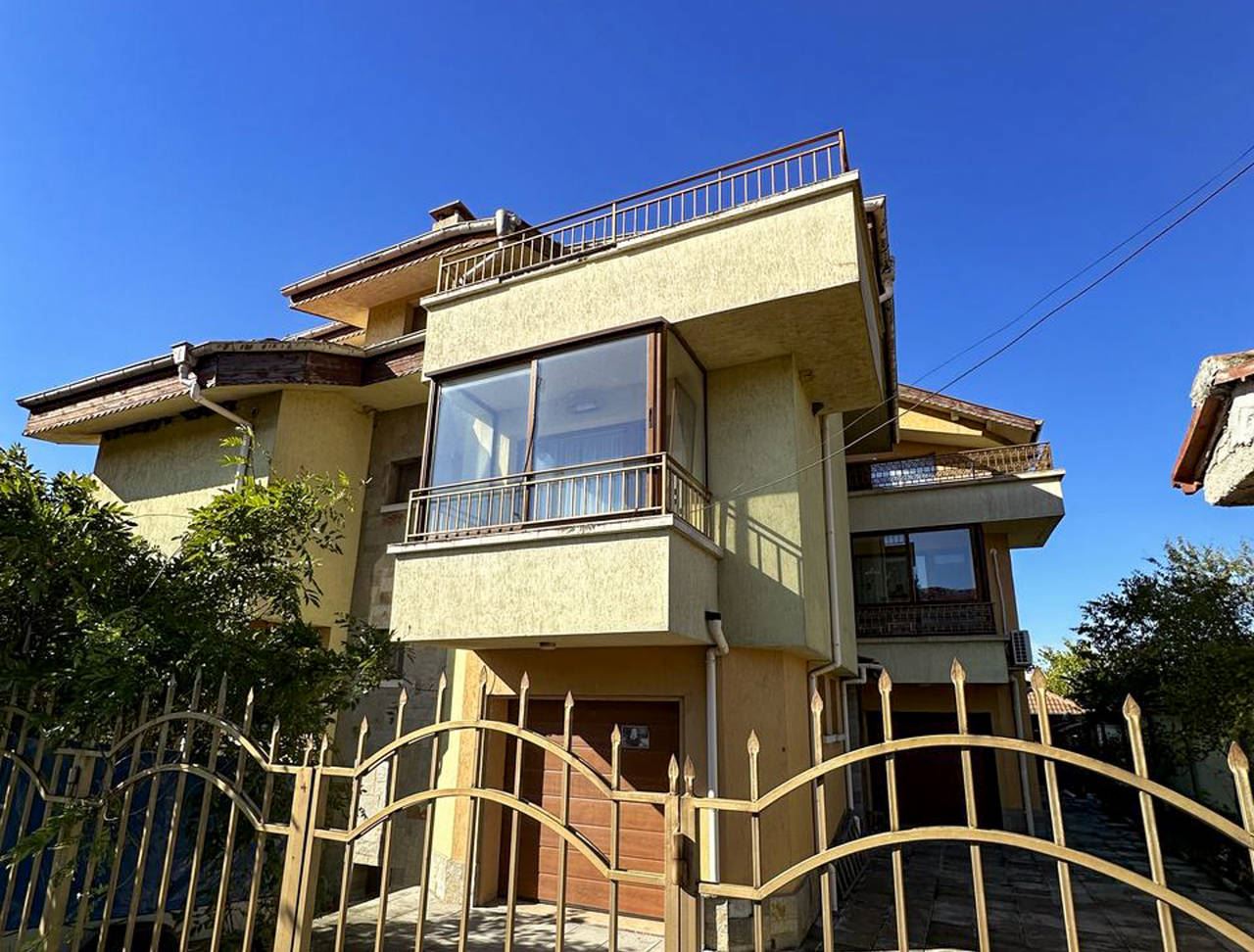 Przedstawiamy niezwykle funkcjonalny i przestronny dom na sprzedaż w spokojnej dzielnicy Burgasu Banevo. Nieruchomość ma całkowitą powierzchnię zabudowy 318 m2 oraz zadbany ogrodzony ogród o powierzchni 200 m2 – idealne połączenie rodzinnego spokoju, wygody i komfortu, zaledwie kilka minut od miasta. Dom jest w pełni umeblowany i wyposażony, z garażem z automatyczną bramą oraz pięcioma balkonami tarasami, w tym dużym panoramicznym tarasem z widokiem na Burgas.
