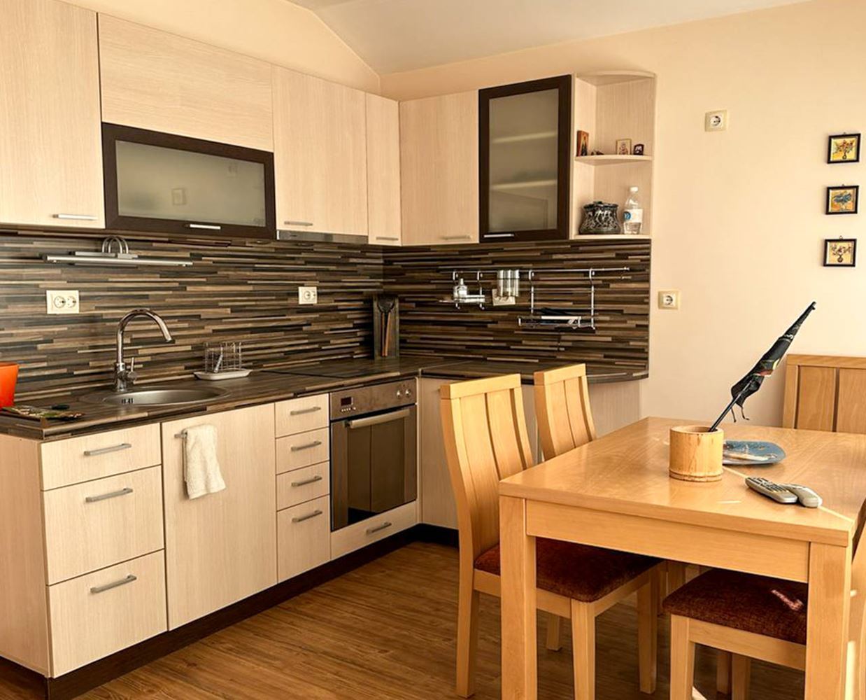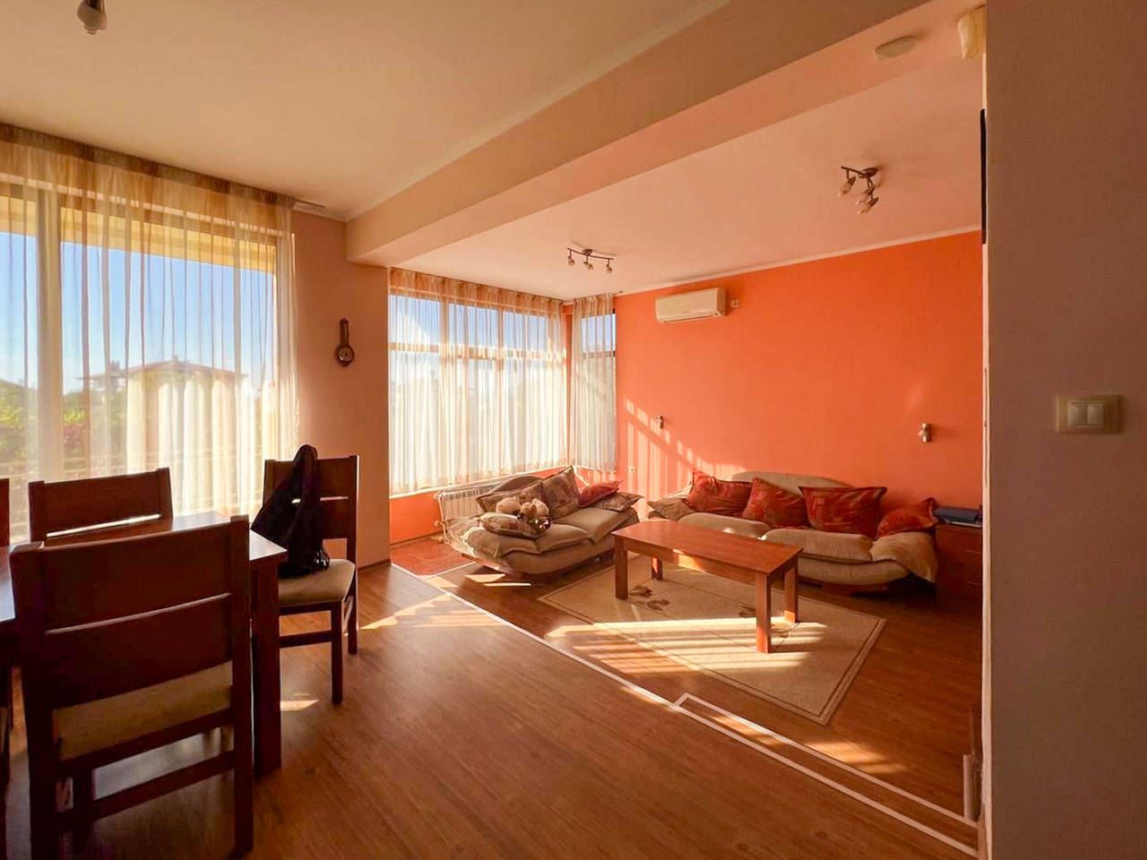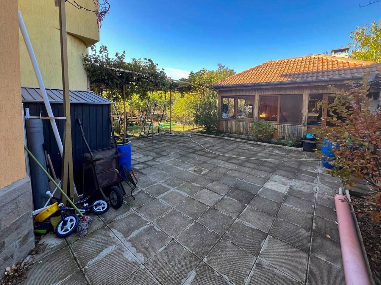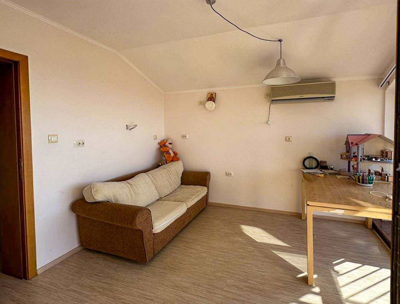 Przedstawiamy niezwykle funkcjonalny i przestronny dom na sprzedaż w spokojnej dzielnicy Burgasu Banevo. Nieruchomość ma całkowitą powierzchnię zabudowy 318 m2 oraz zadbany ogrodzony ogród o powierzchni 200 m2 – idealne połączenie rodzinnego spokoju, wygody i komfortu, zaledwie kilka minut od miasta. Dom jest w pełni umeblowany i wyposażony, z garażem z automatyczną bramą oraz pięcioma balkonami tarasami, w tym dużym panoramicznym tarasem z widokiem na Burgas.