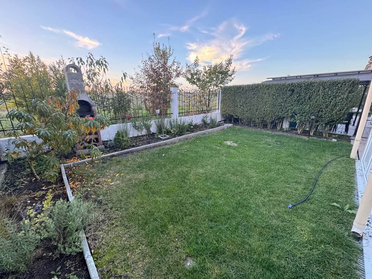 Ogród został profesjonalnie zagospodarowany, znajduje się w nim strefa grillowa i dwa miejsca parkingowe.