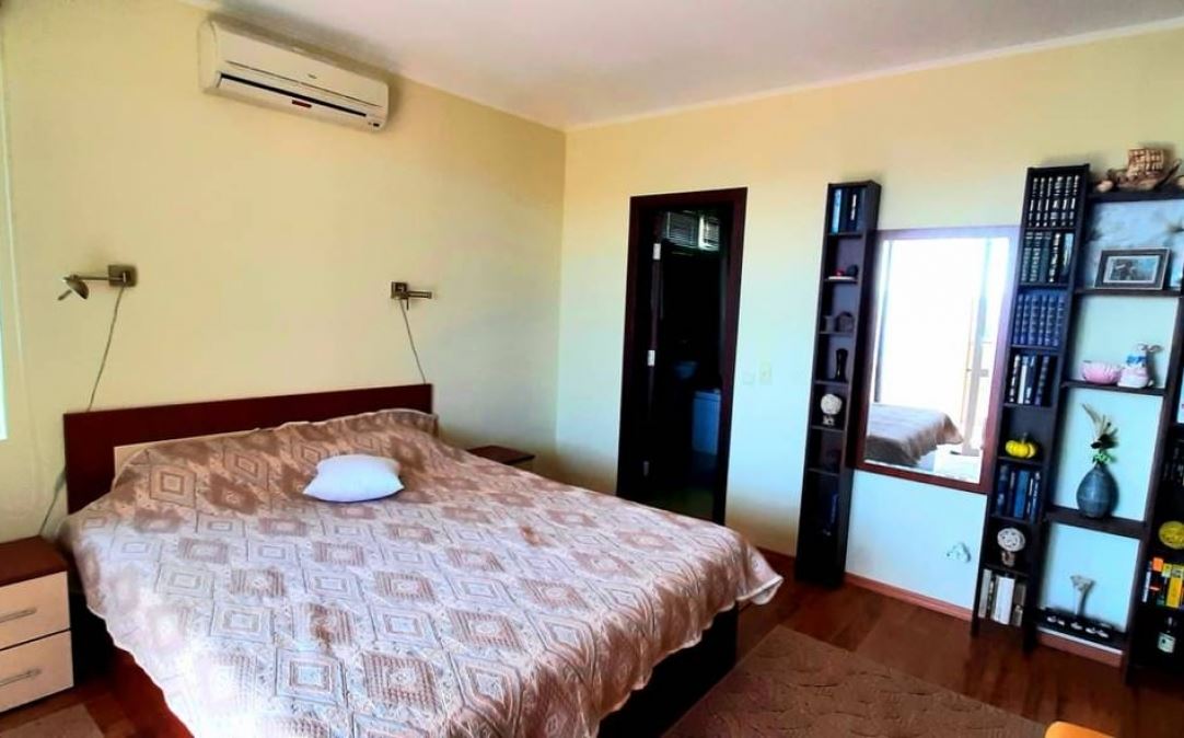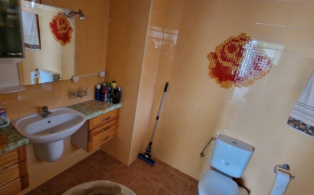 Oferowany przez nas dom jest dwupiętrowy, o powierzchni 129,10 m2. Na pierwszym piętrze znajduje się salon połączony z kuchnią, spiżarnia, łazienka. W części kuchennej znajdują się meble kuchenne w zabudowie oraz sprzęt AGD. W salonie znajduje się kominek oraz klimatyzacja. Z salonu jest wyjście na zadaszony taras. Na drugim piętrze znajdują się dwie sypialnie, balkon, garderoba. Każda sypialnia ma własną łazienkę, klimatyzację. Z obu sypialni jest dostęp do balkonu wyposażonego w meble tarasowe.