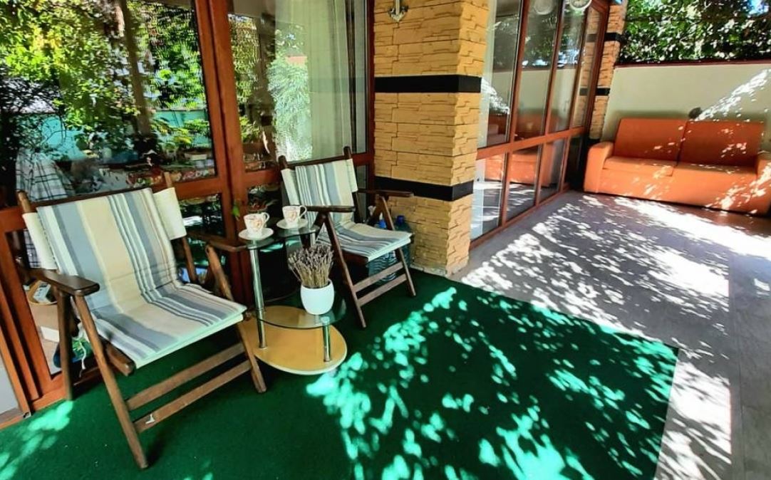 Ten dom ma wiele zalet, takich jak murowany garaż z automatyczną bramą, metalowa brama zainstalowana przy wejściu na działkę; łazienka-sauna z osobnym wejściem i ogrzewaniem elektrycznym. Przed domem znajduje się wygodny zadaszony przestronny taras otoczony zielenią i kwiatami. Jest miejsce na grilla. W ogrodzie przed domem rosną drzewa owocowe: wiśnia, morela, grusza i jabłoń. Do pielęgnacji ogrodu zainstalowano automatyczne nawadnianie, co pozwala dbać o ogród na odległość. Dom posiada system alarmowy, telewizję satelitarną i internet.